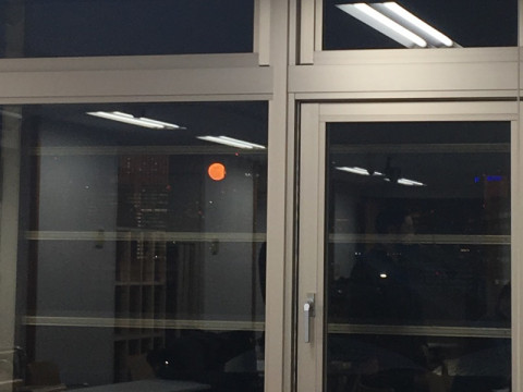 大きくて赤い 夕暮れ時のミーティング中、 「あっ!!!」と叫びました。 なになに、なにごと!? 「あれ、月‥‥ですよね?」 おおー、でかい! 昇ったばかりの、大きくて燃えるようなオレンジ色の月です。 こんな大きくて赤いの、見たことないかも。 ほぼ日手帳で調べると、今日はばっちり満月の日でした。 (肉眼で見るほど大きくは写せず、残念‥‥) ちょっと前に西側の窓から見える夕日のことでみんなが盛り上がっていたけれど、わたしたちがいる東側の部屋も、だいぶ盛り上がりました。 やっぱり、弊社の習慣なんだなあ‥‥。 2019/01/21 21:04 |