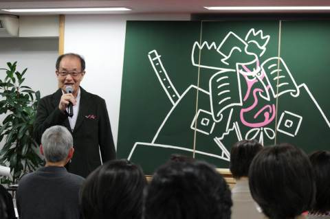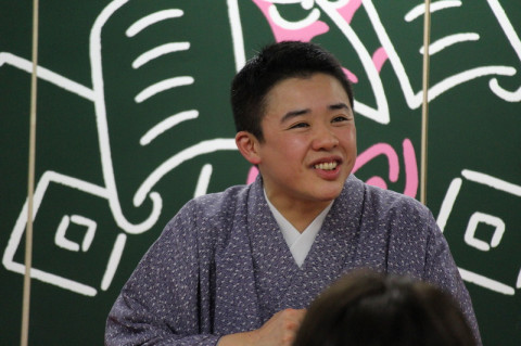 ふたたび ほぼ日の学校Hayano歌舞伎ゼミ第8夜は、桂吉坊師匠をふたたびお迎えして芝居噺をたっぷり聞かせていただきました。 去年8月、草月ホールで 「2時間で忠臣蔵」という途方もない力技をみせてくださった吉坊師匠。今夜はそれを上回って。 芝居噺三席を休みなく2時間半。 歌舞伎ゼミを主宰する それにしても、吉坊師匠の三席、圧巻としか言いようがありませんでした。 芝居が大好きで仕方ないおかしな人々が登場する芝居噺を語って演じる吉坊さん。 その姿はお茶目でいて、なおかつ優美。さらには、一人で演じる合戦の勇壮なこと! 「本能寺」 「蛸芝居」 「浮かれの屑より」 関西以外では聞く機会の少ない芝居噺に、受講生のみなさんはすっかり心を奪われているようでした。 さらに、みなさんを魅了したのは、吉坊師匠の噺とぴったり息をあわせた見事なお囃子。 上方から駆けつけてくださった笑福亭生寿さん以外の三遊亭わん丈さん、三遊亭歌つをさん、桃月庵ひしもちさんは、芝居噺にお囃子を入れるのが 「生まれて初めて」(吉坊師匠談)くらいで今日も、ぶっつけ本番状態にもかかわらず、歌舞伎の舞台が目に浮かぶようなすばらしいお囃子を入れてくださいました。 恩田えりさんの三味線も本当に圧巻でした。 伝統芸能の力強さ、人間の底力、そんなものを丸ごと体感した歌舞伎ゼミでした。 2019/01/23 22:20 |