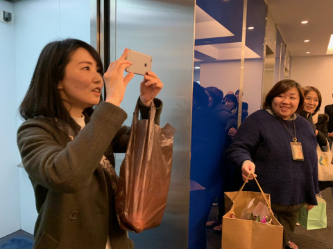 グッドラック、リンリン 時の流れは流れてしまうもので、 「1月末」のこのときがやってきてしまいました。 てことはあしたから2月じゃんか! ひぇーーー。 で、我らがリンリン部長は、まっくろになった寄せ書きを手に、最後のあいさつは案の定うたをうたって、エレベーターに乗って退職しました。 君の行く先にいっぱい幸あれ! そして君の歩いたあとには私たちが継ぐべきよいことが、みごとに花開いています。 これからもお互いいきいきとがんばろう、ありがとう。 リンリンがお世話になったみなさま、ありがとうございました。 2019/01/31 19:10 |
