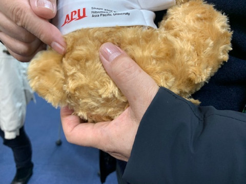 えぴゆくん 九州出張組は、きのうは別府に滞在しました。 いまは、山の上の国際的な大学、A P Uに来ています。 学生さんと、APUの今村さんが学内を案内してくださいました。 私はたぶん3度目くらいの訪問ですが、あいかわらずエネルギーと工夫とまじめさとたのしさがある場所です。 見学の最初にウェルカムプレゼントでいただいたくまを糸井は終始ダッコして歩いていました。 くまの名前を「えぴゆくん」とつけていました。 生協に行ったら、売っていました。 2019/02/05 11:42 |