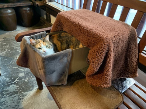 たまごの味噌漬けを食べたり、大きな三毛猫に出会ったり、お城を見あげたりして、2日目も元気に過ごしております。