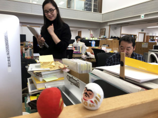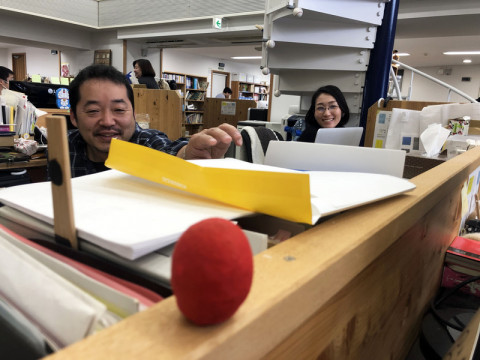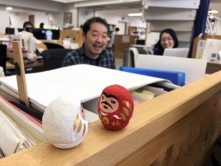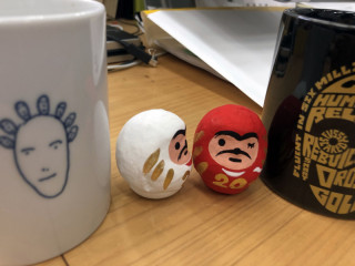 ほぼ日のおさるだるま劇場。 「こんにちは、紅(あか)でーす」 「こんにちは、白(しろ)でーす」 「ふたりあわせて」 「ほぼ日のおさるだるまでーーす」 「ほぼ日の事務所にいるよ!」 「いるよ!」 「今日は」 「ほぼ日手帳の本体を作っている 「来てみたよ!」 「中国担当の 「きっとそうだよ!」 「そうに違いない!」 「2020年の手帳をもう製作してるんだね〜早いね〜」 「だって9月から発売だもの!」 「そっかー」 「あっ!‥‥気づかれた!」 「なにしてるんだよー」 「笑ってるよ」 「笑ってるよーー」 「大声で話すからだよ!」 「大声で話したのは自分だよ!」 「いやいや自分だよ!」 「わ、手をのばしてきたーー」 「さらわれる〜」 「さらわれる〜」 「よしよし。かわいいねー。 ほぼ日手帳本体の製作は、これからが佳境だよ」 「(わ。わ。わ。‥‥やっぱり聞かれてた?)」 「(聞かれてた? 大丈夫? このまま家に連れ去られて怖いことされたりしない?)」 「だいじょうぶ。おさるだるまちゃんたち、いつもこの事務所を見守ってくれてありがとう。 これからもよろしくね」 「(ほっ‥‥怖い人じゃなかった〜)」 「(ほっ‥‥よかったー)」 「それは、どうかな?(ニヤッ)」 ほっぼにっちっの、おさるだるま、げ、き、じょう〜〜♪ (つづく‥‥かも?) 2019/02/08 14:40 |