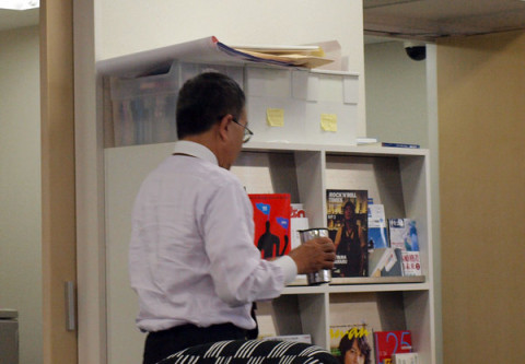 突然のカサイ みんなの大好きな 「ワーワー、カサイさーん」 「時計の秒針が早いカサイさーん」 「前置きのないカサイさーん」 「突然そっけなくなるカサイさーん」 「何!?」 (振り向いた! は…、早く誰か話題を!) 「カサイさん、最近髪を切られましたか?」 「切ってない! 2週間くらいぜんぜん切ってない!」 「髪形はどういう指定をしてるんですか?」 「短く! それだけ! 床屋さんはどこでもいいの!」 あ、もう背中を向けた! 早い。 今日も突然が得意のカサイさんでありました。 いつかに、つづく。 2009/09/10 18:42 |