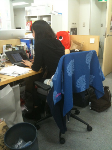 チェアーにかかっているブランケットをよく見たら、アロハ。