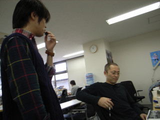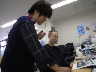 弁当手配。 明日は、 「OHTOチーム」がロケにでかけます。 15人という大人数ででかけるので、弁当の手配だってたいへん重要さ。 今回その重責をになったのはどうやら いつも、私の席でスナックをたべている 「僕は、米さえうまけりゃ いいんですけどね。」 で、メニューをにらみつけるように熟読しているところに同チームの 「責任重大っすよ。」 というような脅しをかけています。 ところで、彼は、特定の乗組員に対してドSになります。 よくわからんけど、幸運を祈る! 2009/09/15 15:06 |