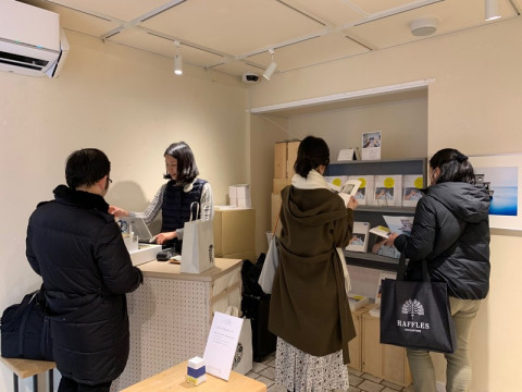 よい日差しが。 幡野広志「写真集の写真展」は二日目も多くのお客様にご来場いただいています。 今日は午後から来てみたら窓のある二階はまた違うおもむきがありました。 そうそう、写真集の見本は一階のレジの横の棚にあります。 購入特典もごらんいただけますー。 遠慮なくみていってくださいね。 クリアファイルも同じ場所に。 あ、そしてクリアファイルといえばTOBICHI1のほうの 「すてきな四畳間」で開催中の 「『伊丹十三選集』刊行記念 伊丹十三とねこ」のグッズにすごいいいのがあるんだった。 このガウンの紳士の上にねこがいる絵ほんとうにいいんですよ。 搬入の時から注目してました。 もちろん購入しました。 クリアファイルとポーチはあればあっただけありがたいものですから! 2019/02/24 15:54 |