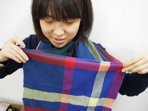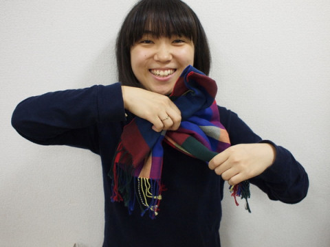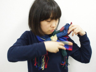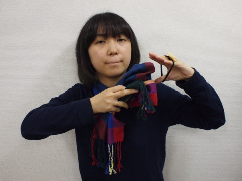 くびまきの巻き方2 ちょっとながくなりますが、くびまきの巻き方解説をします。 ではでは 【1】くびまきの右側をみじかくして、 肩にかけます。 【2】左側の垂れたくびまきを 写真くらいの幅でたたんでいきます。 【3】二回くらいたたみます。 【4】たたんだくびまきのまんなかを 両端からくしゅっとまとめます。 【5】肩にかけていたくびまきの右端と たたんだくびまきを交差させます。 【6】交差させたくびまきの端と たたんだくびまきを ヘアゴムなどでくくります。 【7】たたんだくびまきを リボン型にひろげて… 【8】はい、できあがりましたー。 びっくりするくらい ほかの巻き方も近々くびまきのページで紹介しますので、どうぞおたのしみに〜。 2009/09/15 21:13 |