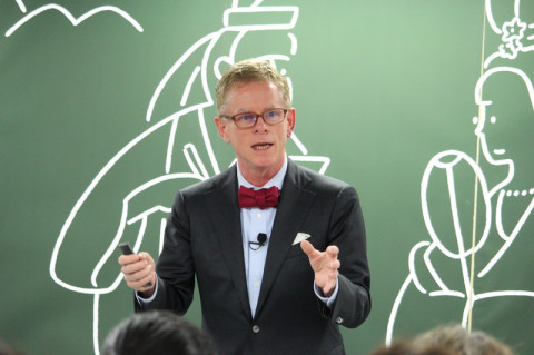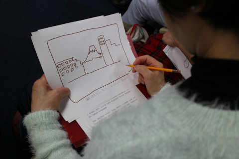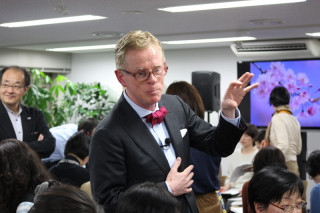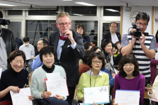日本の歌ごころ 「日本のみなさんは、心に歌をもっています」 「大丈夫。みんな詠めます」 そう励まされて、99人の受講生が全員、富士山になぞらえたloveの歌を詠みました。 ほぼ日の学校・万葉集講座第5回は、アイルランド出身の詩人・翻訳家ピーター・マクミランさんをお迎えしました。 『百人一首』を英訳し、いま「英語百人一首かるた」を世界に広めようとなさっているマクミランさんが、日本人の中にある「歌のこころ」についてじっくり語ってくださいました。 後半は、実践の時間です。 個性を詠ういまの短歌と、共有するたしなみを詠む和歌。 そのちがいを学んだ上で、日本の象徴である富士山を詠んだ古典的な歌をふまえて、受講生のみなさんが、富士山の絵を描き、富士に重ねたloveを詠っていきました。 親を思い、子を思う歌。 ふるさとを思い、夫を思う歌。 さまざまにloveが込められています。 まとめとして、マクミランさんは授業の冒頭に投げかけた問いを繰り返しました。 「詩は役にたたないものですか? 経済につながらない、必要のないものですか?」 たくさんのloveの歌を聞いたあとで、みなさんの答えは自ずと明らかだったでしょう。 最後に、先月、還暦を迎えられたマクミランさんのお誕生日を受講生のみなさんといっしょにお祝いしました。 詳しくは、ほぼ日の学校ニュースをお読みください。 2019/03/06 22:22 |