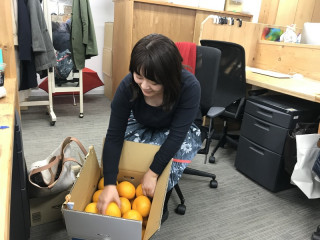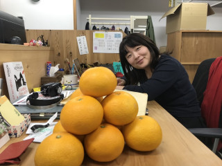おいしいはっさく。 わたしの大好物ははっさくです。 なにも製作していない (このコーナーではよくあることですが)上に、個人的な話ですみません。 ある年から、それを知った香川出身の そして、そのはっさくたちが今年も届いたようです! となりにすわってますからすぐわかります。 「まずはトミタさんがスキなだけもっていってくださいね」 とデスクに積まれた量がちょっと‥‥おかしなことになっていて通りがかるひとみんなに聞かれるので社内にもむいたものを出しておきますね。 このはっさくたち、皮からむかれた一粒づつがおおきくて、それでいて、味の濃さも甘酸っばさも、水分量もすばらしいんです。 はっさく愛するわたしとしてはキラキラひかる宝ものの山に見えてきます。 社内のみなさま、ふじちゃんのところに届いたおいしいはっさく、召し上がれー! これもうれしい日常です。 2019/03/11 17:32 |