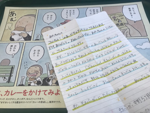 モスのおねえさんからのお手紙 「モスに、カレーをかけてみよう。」 全国のモスバーガー(一部店舗をのぞく)で土曜からはじまっています。 わたしは今日のお昼に そして3人ともオニポテ(オニオンリングとポテト) のセットです。 どれも、ばつぐんに合う! 「かなりたっぷりかけるのがおいしいね」とみんな1袋を使い切りました。 さて、モスバーガーといえば、わたしは大切にしている宝物のお手紙があります。 もう20年ちかく前、小学1年生くらいだったころの話です。 お店に行ったのは夕方だったのに店員さん同士が「おはようございます」と挨拶していたのをふしぎに思い、アンケート用紙に 「なんで朝じゃないのにおはようなんですか」と質問を書きました。 すると、数日後、お店のおねえさんからこんなお返事が届いたんです。 ================= 「おはようございます」のあいさつは朝にいうあいさつだよね? それはいちにちのはじまり=スタートだからいうんだとおもうの。 だからじぶんがおみせに入ってくるときはじぶんにとってモスバーガーのはじまり=スタートだからおみせの人に「おはようございます」 っていうんだ! 朝でもひるでもよるでもいうんだよ。 ================= お手紙ごっこ、のようなことがいちばん好きな年齢だったので、 「お店のおねえさんからお返事がきた!!」とほんとうにうれしくて、今までずっととってありました。 (最後の写真がそのお手紙です) これからも、モスバーガーに行くたびに、このお手紙を思い出すだろうと思います。 そんなことをおしゃべりしながらの、おいしいランチの時間でした。 2019/03/18 13:48 |