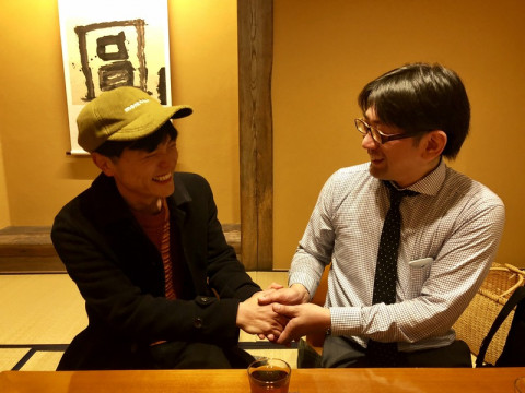 してしまいました。 社会人になって今年で18年目くらいなのですが、はじめてダブルブッキングというものをしてしまいました。 ふたりのお客さまが同時にいらして、驚きました。 (おふたりに面識はありません) おひとりは、震災後、ぼくらと気仙沼をつなげてくれたり、不定期連載「東北の仕事論」で現地での取材をコーディネートしてくださったり、いろいろと、お世話になっている宮城県庁の山田康人さん。 もうおひとりは、 「巴山くんの蘇鉄」という連載でひょんなことからソテツの種を入手して以来、人生がつよく回転し始めた顛末を語ってくださった、マンガ家のハヤマックス先生です。 山田さんは、最近発売になった、 「まるごと一冊、女川ムック」 を、持ってきてくださいました。 すごい! 中には、以前、山田さんの案内で須田町長をはじめ 女川の人たちを取材したのですが、そのときのみなさんのなつかしいお顔が、あちこちに! さっそく、読ませていただきます。 amazonでも売ってました。 あ、裏表紙は、有名な「おかせい」の女川丼です。 これ食べてみたいんだよなあ。 いっぽうハヤマックス先生ですが、メガネやめたんですね。 自分は、先生のことを 「ミラクル・メガネ・ボーイ」と心のなかでひそかに呼んでいたのですが、月日は流れ先生は、いつしか 「ミラクル・レーシック・ボーイ」 になっておられました。 最近の活動などを教えていただき、それがまた妙な感じなので、取材などをさせていただくことにあいなりました。 「あの蘇鉄」の、最近の写真も見せてくださいました。 育ってる! 生き物感が増してます。 繰り返しにはなりますが、ハヤマックス先生のその稀有な人生の一コマが語られた 「巴山くんの蘇鉄」というコンテンツ、もし未読でしたら、騙されたと思って読んでみてください。 おふたりそれぞれとご相談ごとをし、最後はおふたり、固い握手を交わし、それぞれの場所へと、帰っていかれました。 県庁の人と、マンガ家さんと。 立場や肩書、お仕事の内容など、いろいろちがうふたりが、 「ほぼ日」という場で交差する。 うれしい気持ちで見送りました。 2019/03/29 18:44 |