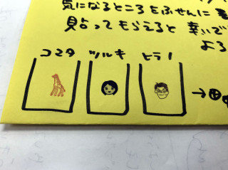 チェックマークの謎。 手帳チームでは、なにかの書類をみんなに見てもらうときに、 「名前入りのボックスを書いておき、そこにチェックを入れてもらう」 という習慣があります。 ‥‥が、今日もどってきたチェックマークはみんなのレベルが高すぎてビビりました。 最初にキリンのスタンプを押したコマタはいいとしましょう。 その次の 手描きの が、 スクリーントーンのようなドットの集まりで、まるで、なにかをプリントしたようです。 ただ、触ってもデコボコしていないし、貼ったわけではなさそうです。 もともとの紙も黄色いものなので、同じ紙を用意できたとも思えません。 わざわざ位置をあわせて、プリントアウトをしたということ‥‥? それにしては、位置もきれいです。 みんなに聞いても、 「何ーーー?!」 「わからないーーー」 という感想。 しかも肝心の とりあえず、ほぼ日手帳に貼っておき、次のミーティングのときにでも本人に聞いてみることにしました。 こういう、ちょっとした紙ものを貼っておくのにも、手帳はとても便利です。 ‥‥が、モヤモヤするなあ〜。 ほんと、どうやってやったんだろう。 (続報があれば、お知らせします) 2019/03/29 18:27 |