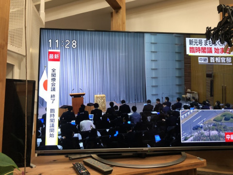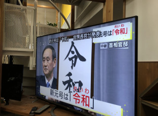 11時30分から、みんなでテレビの前に集まって、あたらしい元号の発表をいまかいまかと待っておりました。