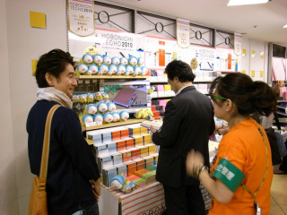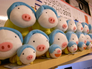 ブキャッ★ ブタフィーヌさんぬいぐるみが 「ほぼ日」を飛び出してロフトの店頭に並ぶ日がやってきました。 さっそく作者のたかしまさんと渋谷ロフトで待ち合わせをしておそるおそるほぼ日手帳の売り場をのぞいてみると、仲良く組み体操をするブタフィー、水浴び?のように器に入ってはしゃぐブタフィー、手帳のモニターにもぐりこもうとする(?) ブタフィーを発見! こんなにたくさんいる〜。 とはしゃいでいたら、 「こんなにたくさんいても、 ブタフィー星ではひとりずつ 見分けられているんでしょうねー」 とたかしまさんもうっとり。 「とにかくいっぱいあると かわいいと思って! ほぼ日手帳のところだけではなく、 6階のバラエティ売り場にもいますよ」 とワルフィーヌさんファンというロフトの緒方さんが教えてくださいました。 では、6階にも移動してみましょ。 ブキャキャッ。 ブキャキャッ。 2009/09/18 18:35 |