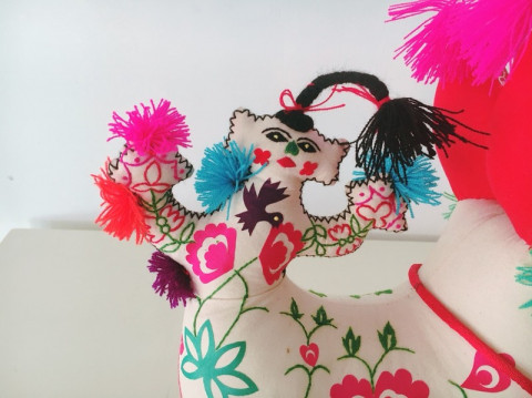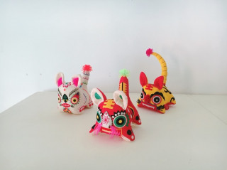 虎の置物。 いよいよもってして、 「你好我好 東京出張所」の荷物は、すでに会場に運ばれるのを待つ状態になりました。合計25箱。 箱は大小取り混ぜて。 「台湾には持ち帰らぬ」という固い決意と荒い鼻息のもと、青木由香さんと連日ライン電話でとても大きな声で打ち合わせています。 ふたりとも非常に声がでかい。 今日ご紹介するのは、 「虎の置物」。 なんじゃこら! というかわいさです。 青木さーん、これなんですか? ========台湾では、虎は魔除けのキャラクターです。 虎モチーフの置物を玄関に向かっておいたり、赤ん坊の枕元においたりします。 この布製の置物は、魔除けにしてはだいぶかわいらしいのです。 造形も色合いも絶妙。 赤いものもあって、それはそれで、ちょっと中華っぽくてカワイイのです。 そして、今回もっていく一番大きいサイズの白系のものは、タイの山岳民族風なところもあるし、ヨーロッパの東のはずれのほうの雰囲気もあるし、台湾で使われるものなのに無国籍感があります。 そして、虎はネコ科の動物だけあって、猫にも見えるところが、この置物のさらに良いところです。 ======== このおきものの作りは、本当に緻密ですばらしい。 なんて……丁寧な仕事をほどこされているのだろう。 そして、思いもつかないような色合い。 派手なようでいて統一感があります。 こういうとても中国文化圏なものでも、青木さんのセレクトのもののセンスはすごいなあと思います。 おうちの魔除けに、虎一頭いかがでしょうかー。 2019/04/09 21:33 |