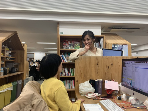 が衝立の向こうに現れては、打ち合わせをしていきます。
