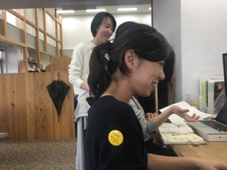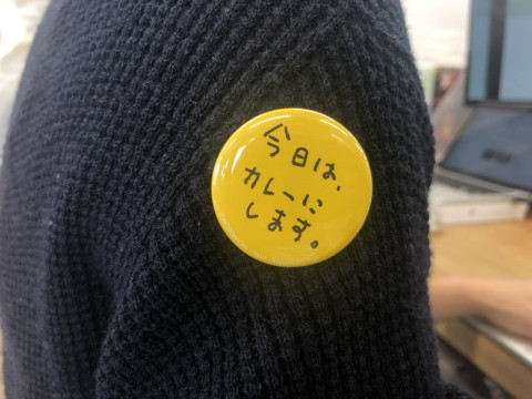 カレーバッヂ完成。 席にもどってくると、 「第4回生活のたのしみ展」のため、 「あはは」「あははは」と会話の中にも笑いが混じりますが、じゃあ次!じゃあ次! と、相当なスピードで、いろいろなことを決めています。 すぎやまは、きょんとぼくの机の間のゴミ箱の上に座って、パソコンを打ちまくっています。 だだだだだ、だだだだだだだだ‥‥。 話しかけられるムードではありません。 しかも、すぎやまを訪ねてひっきりなしに人がやってきます。 「カレーの恩返しカレー」を当日カフェレストランで食べるともらえる、糸井重里の手描きバッヂが完成したので見せたかったのですが、そんな余裕はなさそうです。 ということで、勝手に服につけて宣伝させてもらうことにしました。 「あれ、何つけられてるんだろう〜、あははは〜〜どうぞどうぞ〜〜」 (顔をパソコンに向けたまま、ずーっとキーボードを打ち続けるすぎやま) 装・着! おーーー、かわいい。 そして、メッセージ性がすごいです。 このバッヂの文言は 「今日は、カレーにします」。 実際はどうなのかしりませんが、一気にカレーが大好きそうな感じになりました。 ‥‥と、いうわけで! こんなふうに、身につけるとそれだけでカレー好きをアピールできる特製バッヂは、 「第4回生活のたのしみ展」でカレーを食べると1ケもらえます。 (レストランのみ。文言はランダムです) カレー好きのみなさん、よかったらぜひぜひ手に入れちゃってくださいね。 かわいいのですー。 「(急にくるっと振り返り) あ、これ、もしかして、カレーバッヂですか? 会場に届ける手配ってできてます?」 できてます。 「よかったー! 気になってたんだー」 (にっこり微笑むと、くるっとパソコンに顔を向け、また怒涛の勢いでキーボードを打ち続ける) さすが。というかよく、そういう聖徳太子みたいなことができますね。 信じられない数の案件を同時にすすめまくる 「生活のたのしみ展」番長、まじで尊敬しています。 2019/04/12 15:58 |