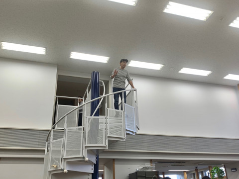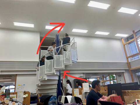 不安な人がぞくぞくと螺旋階段をあがっていきました。