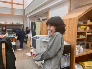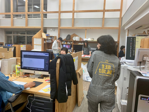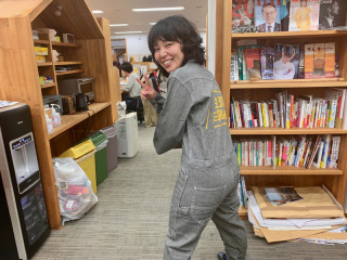 「生活のたのしみ展つなぎ」を着用していました。