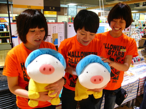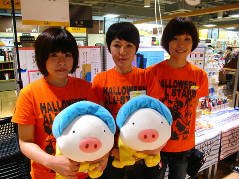 7階に到着〜 天神ロフト、7階売り場に到着すると…ありました!ありました! 「ほぼ日手帳」と 「ブタフィーヌさん」です! ジャ〜〜ン!! あ〜! いろんなブタフィーヌさんがほんとうにかわいらしく、わいわいと! わー、こんにちはー。 渋谷ロフトと同じく、単行本も1巻〜6巻までそろっていますのでぜひお手にとって見てみてくださいね! 3枚目の写真でスタッフの安藤さん、加藤さん、田中さんが持っていらっしゃるのはディスプレイ用の 「45cmブタフィーヌさん」。 こちら、非売品なのですがぬいぐるみのタグに掲載されているQRコードからアクセスしてアンケートに答えていただいたかた、抽選で66名さまに当たりますのでぜひご応募くださいませ! (お写真には写っていませんが) 天神ロフトの野村さんと真正さんもありがとうございました! それからたかしま先生&ポカスカジャン& 「ブタフィーヌさんの絵描き唄」をたのしんでくださっていた (たぶん…小学生くらいかな?) 小さなお客さま、うれしかったです。 ありがとうございます〜。 みなさまも、よろしければシルバーウィーク中にぜひ、ロフトさんへ行ってみてくださいね。 ブタフィーヌさんがお待ちしている店舗は こちらからごらんいただけます。 それでは〜! ハヴァナイスシルバーウィーク。 2009/09/20 11:09 |