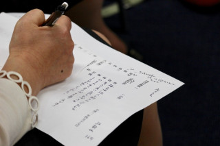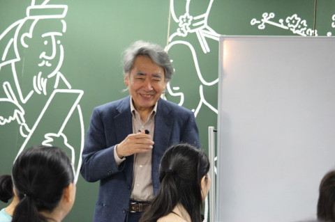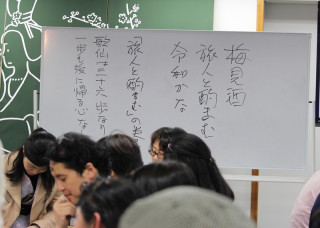 「旅人と酌まむ」の巻 平安時代の和歌の名手36人を指す36歌仙にちなみ、参加者全員で36の歌を詠みついでいく連歌(れんが)のひとつの形、歌仙。 ほぼ日の学校・万葉集講座第8回の今夜は、永田和宏さんを「さばき手」として、99人の受講生みんなで歌仙を巻きました。 (連歌を詠むことを 「巻く」と言うそうです) 受講生のみなさんの大半は、歌仙を巻くのは人生初体験です。 「え〜、どうするの〜」という不安の声もありましたが、はじめてみると、みなさんの熱気と勢いは大変なものでした。 最初の句、発句(ほっく)は永田さんから。 前回授業で、新元号の引用元となった万葉集の「梅花の歌」をとりあげられたことを踏まえて、この一句から歌は起ち上がりました。 梅見酒 旅人と酌まむ 令和かな 永田さんの指導を受けながら、ふたつの班が同じ発句を受けてまったく違うストーリーを詠みついでいきます。 その結果できたのが次のふたつ。 梅見酒 旅人と酌まむ 令和かな 玄海の風に襟立て朝帰り唇に花びら触れて宵の風 スカート揺らし 川面も揺れる満月に行方不明のネコ探す 巡り巡って萩生ふる墓場甘みよき 柿ようかんを つまみ食い 昨日のこともかみしめている味わいをまたずにきえる思いでは インスタだけに残しておこう記憶ではもう少しだけ細いはず 何度かわすれたダイエット計画 梅見酒 旅人と酌まむ 令和かな あっと云う間に 霞もおぼろかすれゆく あけぼのの夢 床で追う うさぎが招く ティーパーティ夜の風 月光聞こゆ リフレイン 秋のつまみは焼いた棒だらぎんなんの 爆発音で タヌキにげ 驚くふりして 胸にとびこむ同棲のされど原稿料わずか イチローにわく東京ドーム立ち上がる 白樺薫る サウナ室 倒産の日の日記を付ける 時間の制約もあり、できたのはここまででしたが、みなさん、いつまででも詠んでいけると思うほど、熱気が冷めることはありませんでした。 詳しくは「学校ニュース」をお読みください。 2019/04/17 22:54 |