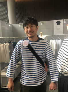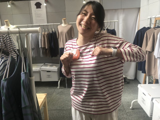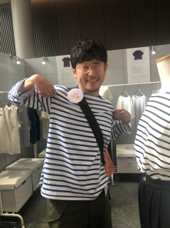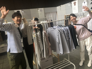 ボーダーズ たのしみ展の〈O2〉ブースに行ったら、アルバイトのおふたりが見事にボーダーかぶりしていました。 かわいかったのでカメラをむけたら、なぜかふたりともハイテンションなポーズに。 たのしみ展の雰囲気のなかにいると、なぜかこのように(?) テンションがあがってしまうことが多いです。 それはそれとして、今日みたいな春らしい日には、ボーダー、いいなあ。 わたしも明日着ようかなー。 ふたりが着ている〈O2〉のボーダー、 たのしみ展のブース(TOKIAガレリア)でも、 「ほぼ日ストア」の〈O2〉のページでも、まだ買えますよ。 よかったら覗いてみてくださいね。 2019/04/19 17:20 |
