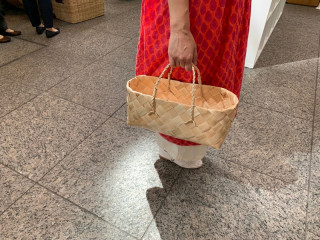 でも購入できるようになった月桃のカゴを持ってもらいましたよ〜!