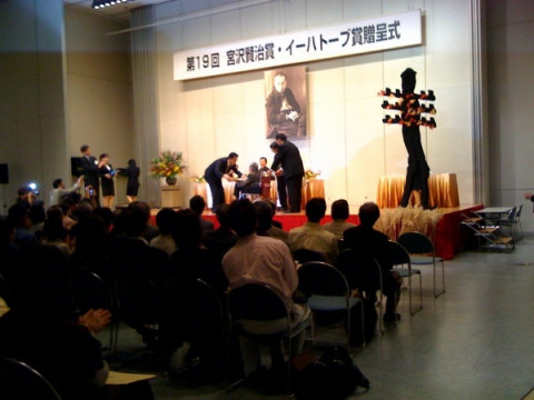吉本さん、会場に到着されて花巻市長から賞状を受け取っています。