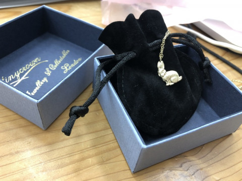 好評販売中です! 先日、weeksdaysのページにお風呂にまつわる エッセイを寄稿してくださった ロンドン在住のイセキアヤコさん。 先日まで一時帰国されており、京都TOBICHIにも立ち寄ってくださったそうです。 そのイセキさんが監修している 「イセキアヤコさんのジュエリーのお店」では、ころんとした愛らしいうさぎをモチーフにした、ラビットペンダントを販売中です。 ペンダント裏面には、ロンドンで貴金属の厳しい品質検査に合格したことを証明する刻印も入っています。 こんな特製ボックスに入れてお届けします。 この機会にぜひどうぞ〜!! 2019/04/25 19:17 |