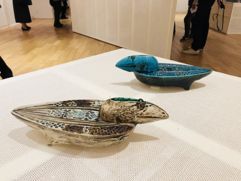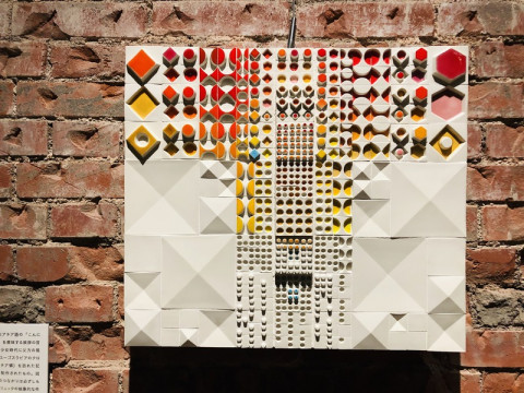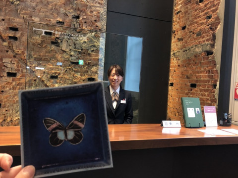 @東京・丸の内 JR東日本・東京駅の丸の内北口の改札を出たらすぐの東京ステーションギャラリーで、 「ルート・ブリュック 蝶の軌跡」展が開催中です。 ただいま、TOBICHI常設ショップの奥、 「すてきな4畳間」にて、この展覧会と連動して イントロダクションのような小さな展示を開催しています。 今朝、東京ステーションギャラリーのほうへお邪魔させていただきました! ルート・ブリュックさんはフィンランドのセラミック・アーティストで、約50年、たくさんの作品をつくり続けたそうです。 そのうち、180点ほどが日本に上陸。 ブリュックさんの作品を網羅的に観ることができる、はじめての個展なんです。 いやー‥‥、すごかったっ!!! 写真では伝えられない、陶器特有のツヤっとした質感と、透き通った色。 そして、その作品自体がもつ品性。 終始、圧倒されました。 初期、中期、後期で変わっていく作風を彼女の歩みとともに観ることができました。 わたしは、とくに、後期につくられていたタイルを幾何学的に配置した作品が好きでした。 白いタイルはかわいくておいしそうで、黒いタイルはかっこよすぎで。 ずっと観ていたかったです。 形こそ、四角だったり丸だったりしてカチッとした幾何学模様なのですが、タイルが不揃いだからでしょうか、人の手によるぬくもりを感じました。 グッズもとってもかわいいんですよー! 一部のグッズはTOBICHIでも販売しているのですが、ないものもあるんです。 たとえば、こちらのマスキングテープ(写真6枚目)。 晩年につくられていたタイルのマステでとってもすてき。白黒どっちも買いました。 そして、ほぼ日でもおなじみの アトリエシムラさんのストール! ブリュックさんの前期作品によく見られる青と緑からインスピレーションを受けてつくられたものなのだとか。 興味がある方は、ぜひ先にTOBICHIへお越しください! というのも、TOBICHIでご来場者のみなさまにお渡ししている青い蝶のポストカードを、東京ステーションギャラリーの受付でご提示いただけると、チケットが100円割引になるんです! TOBICHIと東京ステーションギャラリーは東京メトロで1回乗り換えて行くのがおすすめですー。 TOBICHIと東京ステーションギャラリーのそれぞれの内容については、以下の各ホームページをご覧ください。 →TOBICHIのページをみる →東京ステーションギャラリーのページをみる 2019/04/28 15:12 |