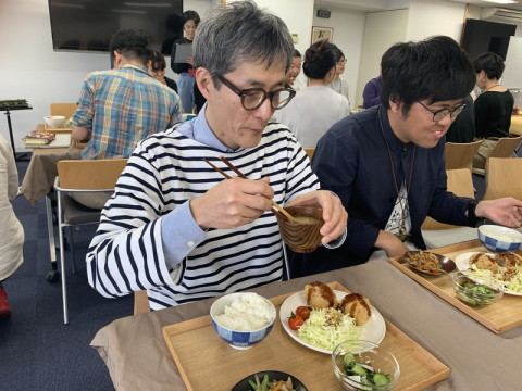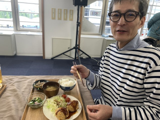 菜箸やがな。 ふだん ついでに、かつて このようなコンテンツがあり、わたしのこころのなかの彼の吹き出しは、かならず関西弁です。 そんなわけで、 「これ、菜箸やがな」と彼はいいました。 給食の箸が、菜箸だったというだけの話です。 取り替える? と、きいたら、そのままでいいというので彼はそのままコロッケをおいしくいただいていました。 そして、こういうときに、普段はそれなりに仏頂面なのに、かならずキメの笑顔で写真に収まってくれるのはさすがだと思っています。 2019/05/14 15:14 |