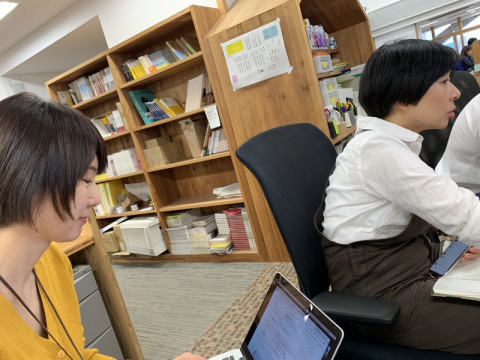 もう場所がない。 どうも、会議が爆発しているようで、ぜんぜん会議室も、フリースペースも空いていない。 しかたがないので、空いている机で横に並んで会議をした。 もしかすると、他の人にはさしたる不便はないかもしれないけど長年の夢を今。 と、へんなところで会議をしていたら、ミスター・ コンドウアキさんの 「おふとんさん」のフィギュアをくれました。 キタンクラブさんにいただいたそうです。 おふとんさんたちがかわいくて夢中になってたら、肝心のミスター・社長の写真をとりわすれました。 ごめんなさい。 2019/05/21 18:09 |
