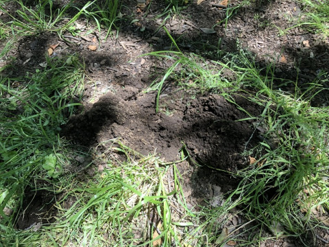 モグラ塚 ゴールデンウィークのTOBICHIは、 「モグラとクジラ」という催しを開催していました。 モグラの剥製やクジラの骨格標本を展示させていただき、TOBICHIがちいさな博物館になったのでした。 その催しでは、アヤ井アキコさんの絵本『もぐらはすごい』の原画も展示させていただいていました。 今日、アヤ井さんにお会いしたら、 「近くにモグラ塚が見られるところがあるので 行きませんか?」 と、誘っていただいたので、行ってきました! モグラ塚とは、モグラがトンネルを掘ったときに出る余分な土を地上に捨てることで、土がボコッと盛り上がっている状態をさします。 わたしはTOBICHIではじめてモグラを見たので、モグラ塚も見たことがありませんでした。 広い公園をずんずん進むアヤ井さんに付いていくと、ありました!ありました!! ああ、写真にすると、めちゃくちゃわかりにくい‥‥!! ごめんなさい! でも、土がこんもりと、盛り上がっているんですよ!! これがモグラ塚なんですね。 注意してみると、あちこちにたくさんありました。 この下にモグラがいて、生活しているんだなぁ、と思うと、なんだかうれしくなりました。 モグラ塚を探すの、たのしいですねー! これから、土を見るとついモグラ塚を探してしまいそうです。 まずは、TOBICHIにいったときに青山墓地で探してみたいと思います。 アヤ井アキコさんの「もぐらはすごい」をまだご覧になっていない方は、ぜひ! 身近にいるのに、知らないことばかりで、大人の方でも興味深く読むことができる一冊です。 そして、ただいま、南青山にある「ビリケンギャラリー」でぬいぐるみ作家の梅津恭子さんの展示が開催されているのですが、そのなかに、アヤ井さんとのコラボ作品があるそうです。 近い内に、わたしもお邪魔してみようと思います! 2019/05/24 17:36 |