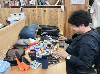 いくつものポーチから大量の小物を出したのはいいものの片付けるすべがわからないのか途方に暮れています。