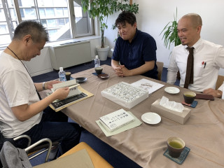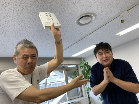 田中泰延さんの本 今日の給食の時間に、 「ネパールでぼくらは。」などでたくさんの原稿を書いてくださっている、田中泰延さんがいらっしゃいました。 明日、泰延さんのはじめての本が発売されるのです。 本のタイトルは 「読みたいことを、書けばいい。」 じつはこのタイトル、以前、ほぼ日の塾の課題となった、 糸井重里と田中泰延さんの対談がもとになっているのです。 刷り上がったばかりの本を持ってご挨拶にやってきた田中泰延さんと、ダイヤモンド社の今野良介さん。 さっそく糸井が本と持ち、みんなに「ヨロシク!」と叫んで、居合わせた乗組員たちは大いに盛り上がったのですが‥‥ それは‥‥ 泰延さんたちが持ってきたみずほの大福が、大いに効果を発揮したのかもしれません‥‥。 大真面目かと思いきや、独特の文体でぐらんぐらんと体勢を崩され、気がつくと引き込まれてやっぱり具体的な力になるという、たいへんおもしろいこの本は、明日、6月12日に発売です。 田中泰延は「たなかひろのぶ」と読みます。 ほんと、おもしろかったです、この本。 2019/06/11 17:44 |