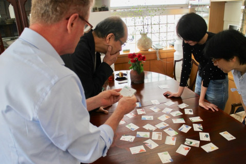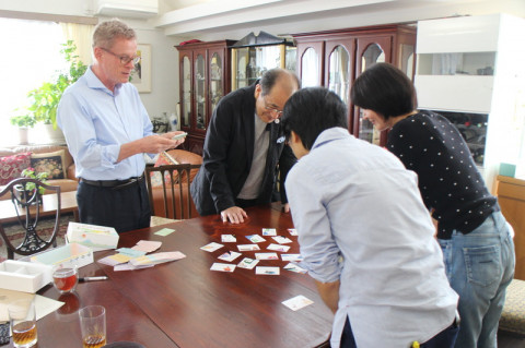 百人イングリッシュ もうすぐ発売です。 世界初の英語百人一首カルタ。 ほぼ日の学校・万葉集講座でみなさんの歌心をひきだしてくれた詩人ピーター・マクミランさんが何年もかけて作ってきた英語の百人一首ができあがり、発表の記者会見がありました。 「日本の心が詠みこまれた百人一首は、日本文化を世界に発信するうえで最適のものです。 遊びながら自然に日本の心がわかります」と語るマクミランさん。 記者会見でも、5行詩に訳した和歌を朗々と吟じて披露されました。 ほぼ日の学校チーム は、先日、一足お先に遊ばせてもらいました。 Spring has passed,and the white robes of summerare being airedon fragrant mount Kagu--beloved of the gods. なんとなくわかりませんか? 春過ぎて夏来にけらし白妙の衣干すてふ天の香久山 聞き覚えのある和歌を英語で聞くのはとても新鮮な経験でした。 おもしろいですよ、英語百人一首。 ちなみに、この日のかるたクイーンは 7月には発売になるようです。 そのときまた詳しくお知らせしますね。 2019/06/13 17:18 |