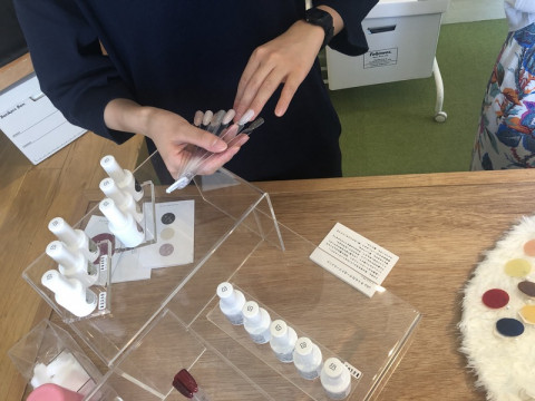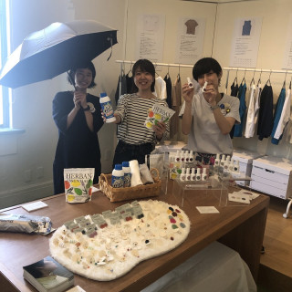 京都は、すでに、夏の日差し! 本日から、〈O2〉のTシャツとともに、夏がたのしくなるアイテムをご紹介するイベントが、TOBICHI京都ではじまりました。 >くわしくはこちら わたしは昨日、京都に入ったのですが、こちらはすでに、夏本番のような日差し! 紫外線対策、まったくもってぬけていました。 今回のイベントでは、こういう日にもべんりなモンベルの「サンブロックアンブレラ」も、ご用意してますよ。 紫外線対策になるだけでなく、使うと、ちょっと涼しく感じるんですよね、これ。 わたしも重宝してます。 でも今日はわすれました。 晴雨兼用です。 また、〈O2〉のTシャツにあう、ニュアンスカラーがきれいな 「uka(ウカ)」のマニキュア、色使いと涼しけな質感がかわいい 「nemunemu」のアクセサリーも。 「uka」のマニキュアは、華やかな色使いではなく、どれも淡い、ニュアンスのあるカラー。 肌の色がきれいに見える色をえらぶと、指先だけでなく手元もきれいに見えるんですって。 さっそくわたしたちも、どれが合うかな〜、とチップをあててみました。 (この作業も、たのしい!) そのほか、黄ばんできたTシャツもきれいさっぱり白さを取り戻す「オキシクリーン」や、夏のおでかけにべんりな、いい香りのするウェットタオル 「ハーバンエッセンシャルズ」もありますよー。 このイベント、7月3日までやっています。 京都観光ついでに、のぞいてみてくださいねー。 2019/06/21 14:51 |