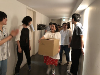 手伝うぞ! 「TOBICHIから荷物がきているので お手伝いお願いしまーす」 「はいよー」 と、1回のエレベーターに乗らないほどの人数の有志が集まりましたよ! 張り切って、運ぶぜー! と思いながら、荷物の場所に行ってみたらば‥‥荷物がもうそんなにたくさんなかった。 つい「生活のたのしみ展」レベルを想定してしまうけど、ぜんぜんちがった。 ほとんどの人が手ぶらで戻ることになりました。 こういうときに、さっと立ち上がる有志たちのフットワークに拍手。 2019/07/02 10:58 |