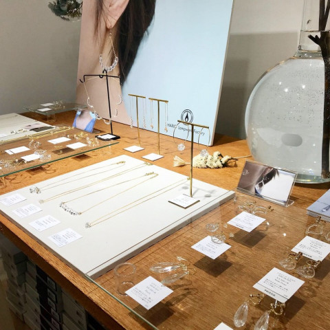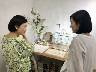 おとなりのHARIOもね。 TOBICHI2のおとなり、TOBICHIのすてきな四畳間ではHARIO Lampwork Factoryさんの すてきなアクセサリーたちがならんでいます。 HARIOさんのものを身につけていると涼しげに見えるんですよね。 今回は定番品もあれば新作も含めてたっぷり70から80点ほどお持ちいただいているので悩みがいがあります。 ちょうどお客様がいらっしゃらないエアポケットのようなタイミングだったのでTOBICHIっこちゃんたちに気になるものを持ってもらいました。 写真を撮った後、それぞれが鏡にあわせてきゃっきゃっしていたのもかわいいかったなぁ。 わたしもいろいろとあわせて悩みに悩んで、ヘアゴムとピアスを入手しました。 この夏、かなり重宝しそうです。 2019/07/03 19:36 |