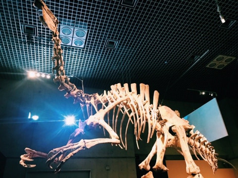 「恐竜博2019」は今日から! 「恐竜博2019」の内覧会にお邪魔してきました (光井のバッグは恐竜!準備ばっちり)。 世界で初公開の、 「恐ろしい手」という意味を持つデイノケイルスの全身復元骨格! ?大きな大きな前足の迫力に、見上げてしばらくぽかーんとしてしまいました。? 北海道むかわ町で見つかった 「むかわ竜」の全身骨格化石は、ぜひ、すぐ隣のブースで上映されている?映像と合わせてご覧ください! むかわ竜が生きていた時代を精密に再現した高精密CGで、むかわ竜はこんなふうにご飯を食べたんだ、群れて生きていたんだなあ、ティラノサウルスに襲われるスピード感って凄まじいんだなあ‥‥と、化石を見るときの想像力がぐっと増します あと、この映像のむかわ竜の顔が、バクみたいで可愛いのもポイント。 子供の頃にこの映像を見ていたら、まだ恐竜は生きていると信じてしまったかもなあ。 他にも、発掘のことが書かれたフィールドノートの展示や、ライブで見られる化石のクリーニング風景、化石のシルエットが幕に映し出される演出など、『え、こんなものも見られるの?』と一同大満足で帰ってきました。 最後の売店にあった海洋堂のカプセルフィギュア、『むかわ竜!むかわ竜!』とつぶやきながら回したら、出ました。むかわ竜!かわいいなあ。 恐竜博2019は、本日7月13日(土)から10月14日(月)まで。 すぐそばの国立博物館で行われている 「特別展 三国志」とのはしごもおすすめです。 メインビジュアルになっている関羽像、かっこよかったなあ‥‥。 2019/07/13 11:20 |