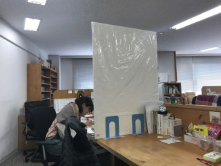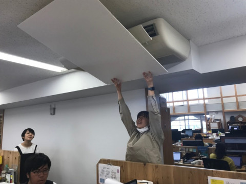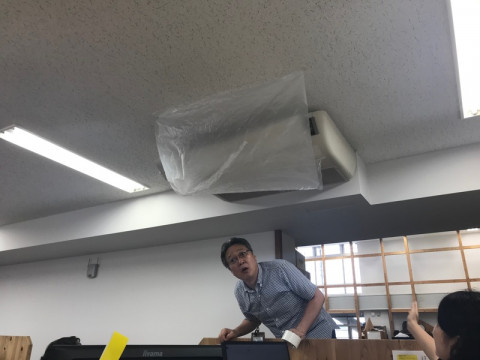 みんなの工夫 長い梅雨がつづく東京で、久しぶりに太陽が出て暑くなりました。 そのせいか、冷房がいつになくパワフルに稼働していました。 空調システムがビルで管理されているからか、他の場所よりも天井が低いせいなのか、ちょうどいい涼しさを作り出すのが大変です。 切ると暑い、つけると寒い。 冷房の風がダイレクトに当たる 「コマタさんとケンカでもしたの?」 「機密情報でも扱ってるの?」と、事情を知らない乗組員みんなから聞かれます。 外は真夏の気候だっていうのに。 総務の 「こっちから、こっち!」と全身の動きで必死に表現して伝えます。 エアコンの設定温度を調整したり、扇風機で空気を拡散させたり、思いつく限りの対策を試みました。 もうすこしでコマタの壁システムがたくさん導入されかけたのですが、最終的には エアコンからの風がビニール袋でふんわりと広がって、かなり快適になった気がします。 これで真夏がやってきたらどうなるのか、みんなの試行錯誤はつづきそうです。 2019/07/19 21:00 |