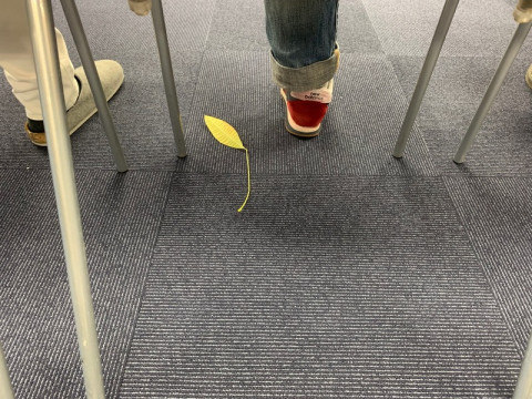 ミーティングルームにピクミンがいたのかな? という葉っぱがおちていました。