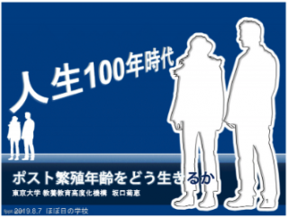 一夫一婦を考える 「ダーウィンの贈りもの I 」第6回講師は、東大特任准教授の坂口菊恵さん。 『ナンパを科学する』という著作のある坂口さんが、人生100年時代を視野に入れて、“繁殖年齢”を過ぎてからの時間をどう生きるのか、をテーマに話してくださいました。 ヒトの性行動を動物と比較しながら研究していた坂口さんは、一夫一婦率の高い鳥の世界にも 「浮気」があることや、同性カップルが19年も続いた例のあるアホウドリのエピソードなど、生き物の意外な性行動を紹介。 そのあたりは、楽しく聞いていられたのですが、テーマが本格的にヒトの性行動の話になるにつれて、教室の空気は重たくなっていきました。 生き物としての基本的活力ともいえる性行動が減退しているというのか、消滅しているというのか……世界の中でも突出して低い日本人の性的行動を次々とデータで示されて、静かな衝撃が教室を包みました。 詳しくは学校ニュースをご覧ください。 2019/08/07 22:55 |
