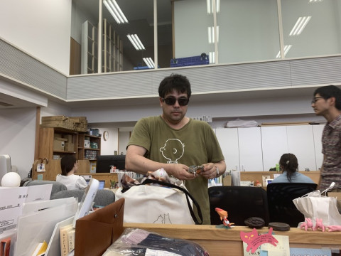 ポメラニアン。 昨日、ポメラニアンのパーカを着る男、それは、作家の浅生鴨さんと、 ある日、おじさま二人が、いいネタぶらさげて社内を歩いていたのです。 こら、ひろわなアカンやつや! とおもいましたので、さっさと会議を設定して、とりあえず雑談をすることにしました。 ちょっとやってみないとわからないことが多いので、とりあえずやってみてからにしようということになりました。 二人はとにかく、なにか行動をおこしたら細かくメモをとるし、話をだれかに聞いたら、それも細かくメモをとる。 ということで解散。 どうにかなるといいなー。 ところで、ポメラニアンのパーカーをきていた昨日は、サングラスをかけていなかったので、おかしなトリミングになっていますが、サングラスをかけてさえいれば写真をだしてもいいのが鴨さんなので、今日も事務所にいた鴨さんを激写しておきました。 会議の合間などの待ち時間に、鴨さんは社内の一角で原稿などを書いています。 2019/08/21 16:17 |