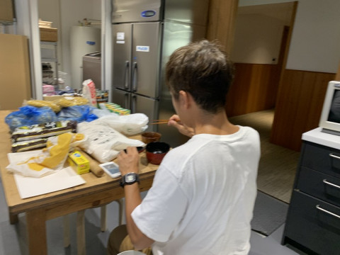 スナック感。 それはきのうのことじゃった。 社内で、なにかごはんが出るときは、大概、料理番長・ お手伝いは、まいどおなじみ、 そうなると、キッチンには、微妙に料理がおいしいスナック感が漂ってしまうので、 そんな夕暮れだったのでした。 あ、乗組員のみなさん、わたしたちはいつだってお手伝いを募集しています。 息抜きに、じゃがいもの芽をくりぬいたり、パイをつくったり、ナスを焼いたりできます。 りかさんの親切丁寧な料理指導をうけることも可能です。 唐揚げが上手になったりします。 よろしくどうぞ。 2019/08/27 16:01 |