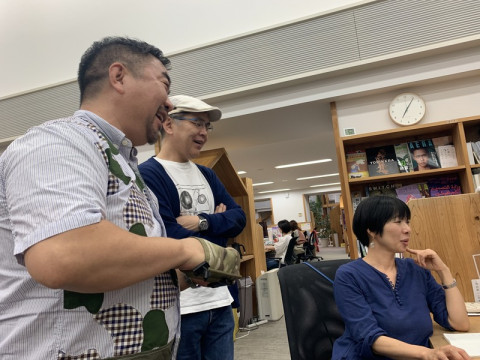 おじぎ、来た! 先程、おとなりの #おじぎがやってきた。 おじぎは、「ただいま製作中」の投稿よりはるかに多い数が繰り広げられているのですが、なかなかカメラに収められていませんでした。 やった、撮れた! 「あ、おじぎパーティーがひとりになってる! いつも、 と、スガノさんは言います。 それをきいて横でゲラゲラ笑っていたら、このおじぎは、わたしの首根っこもつかんでいました。 うん。 表にするのは私の役目だね‥‥。 (得意なところは、人によってちがう。) おじぎが詳細を説明しはじめたら、 「恋歌くちずさみ委員会」だ。 2019/08/27 20:54 |