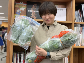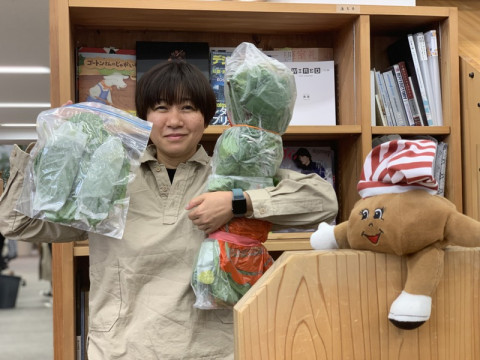 が、たくさんの緑のものを持って、かたわらに立っておりました。