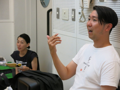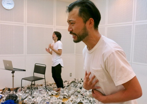 魂の模索中 シアターカンパニー・カクシンハンのお稽古場にお邪魔してきました。 またも、演出家・木村龍之介さんは難しい挑戦を自分に課して頭を抱えていました。 その様子は苦しそうでいて、とても楽しそう。 ま、いつものことでしょうか。 いま、木村さんたちは、10月9日から13日まで渋谷の「ギャラリー LE DECO3」で上演されるポケット公演 「ロミオとジュリエット」に向けて猛稽古中です。 出演は、オペラ歌手の大山大輔さんとカクシンハンの岩崎MARK雄大さん古沢ともえさん、そして渡部哲成さん。 同じメンバーで先月末、大分で「ロミオとジュリエット」を公演してきたばかりですが、舞台を渋谷に変えて、がらりと違った装いになるようです。 でも、変わらないのが、2人の「青年」 ロミオとジュリエットという設定。 シェイクスピアが書いたのは、敵同士の家に生まれた青年ロミオと少女ジュリエットの悲恋ですが、 「魂」が性別を超えると考える木村さんは、ロミオの魂とジュリエットの魂をもつ2人の「青年」によってこの物語を語ろうとしているのです。 「そのまま上げて、上げて、息継ぎなんかしないで!」 「魂が入れば、ことばがちゃんと出る」 指揮者のように大きく腕を振りながら木村さんの厳しい指示がとびます。 それを受けて岩崎さんと渡部さんが全身で格闘していました。 いったいどんな舞台になるのでしょう? こう書くと、難しく聞こえたかもしれませんが、そこは、カクシンハンですから、必ず楽しい舞台になるはずです。 チケットのお求めは、こちらから。 魂の悶絶を目撃してください。 2019/10/04 20:16 |