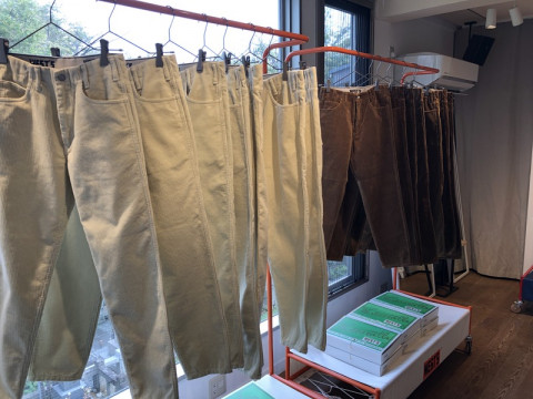 O2試着イベント開催中!その1 あいさつは、「O2かれさまです」な O2チームです。 今日からウェブでは秋の販売がはじまり、リアルではTOBICHIの四畳間と、TOBICHI2にて、イベント開催中です。 TOBICHI2では、春も好評だったWESTOVERALLSの新作コーデュロイパンツと、ほぼ日のために作っていただいたチノパンの試着会です! (コーデュロイは、すぐにお持ち帰りいただけて、チノパンは、受注オーダーです。 デニムももちほんあります) そしてそして、なんと、キッズ用のデニムや、デニムのスタイ、サスペンダーの受注も受け付けています。 出産祝いや、プレゼントにもきっとよろこばれますよー。 きゃわゆい! 試着してみたくてと足を運んでくださる方が朝からいらっしゃってるようです! ありがとうございますー。 モノがいいので、それがみなさまに伝わったらうれしいです。 イベントの詳細はこちらです。 つづく‥‥ 2019/10/10 14:35 |