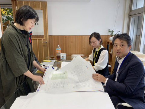 もどした! さて、こちらは、デザイナーの名久井直子さんと凸版の藤井さん&石津さんのコンビです。 今日は何の日かといえば、ある冊子ではなくなった書籍112ページの初校戻しと、あるお札大のものの入稿でした。 初校戻しでは、藤井さんたちに原画をお預けすることも多々あるのですが、今回は、立体物が多く、お持ち帰りいただけなかったので、さまざまなものは、藤井さんと石津さんがそのブツの色をぎっちり目にやきつけてお帰りになりました。 書籍&お札大のそれは、製作順調でございます。 11月の下旬に発売予定&配布予定です。 むふふ。 2019/10/16 18:06 |